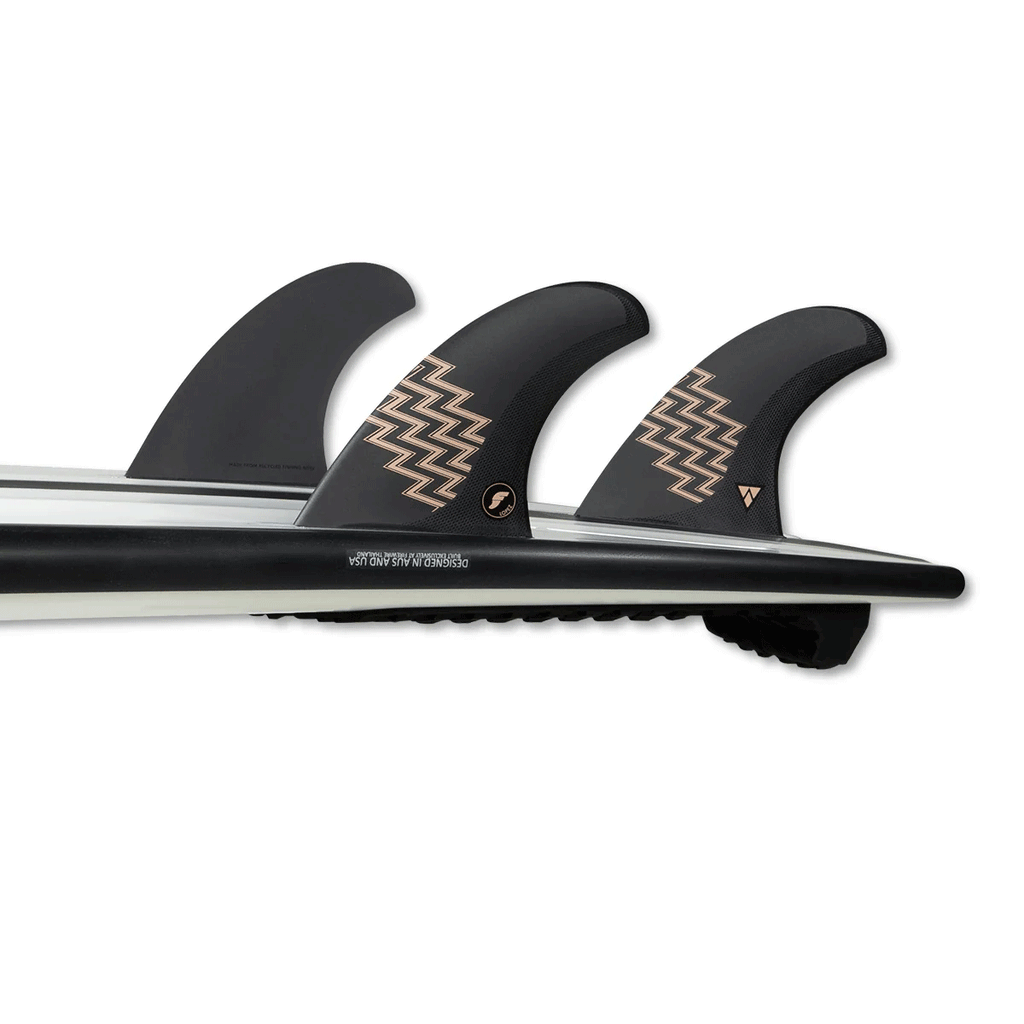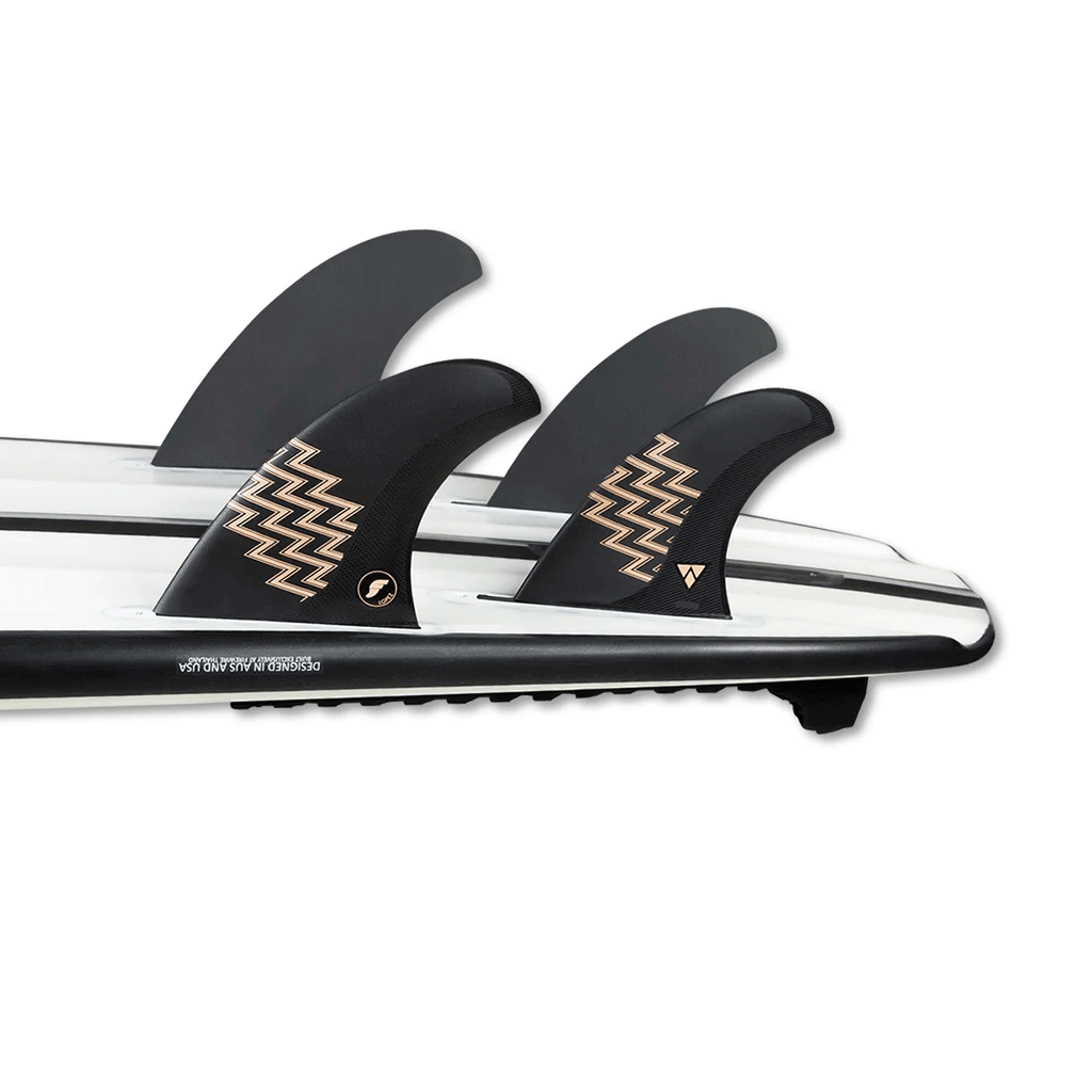 The Alpha line just got a new template, introducing the Gerry Lopez Signature 5-fin. designed in collaboration with legendary surfer/shaper Gerry Lopez. This is a large sized fin in the Pivot template category. The Alpha line is constructed with recycled fishing combined with our C6 air-infused carbon. The 5-fin set is designed to be ridden as either a Thruster or Quad set-up, packaged together for more versatility throughout your quiver.
